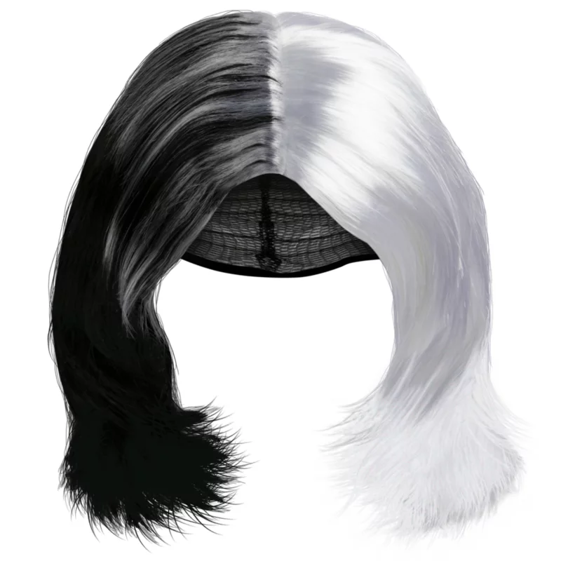 - Black and white wig, split down the middle