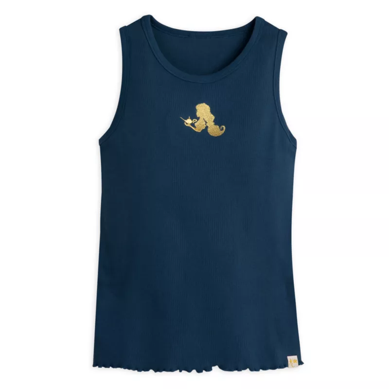 The cool ribbed tank top is a wish come true with scoop neckline, lettuce hem, and golden Princess Jasmine embroidery.