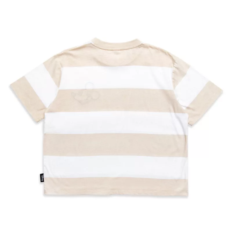 Sport a laidback look with this cream coloured Mickey Mouse Striped Crop T-shirt featuring a subtle embroidery of Mickey.