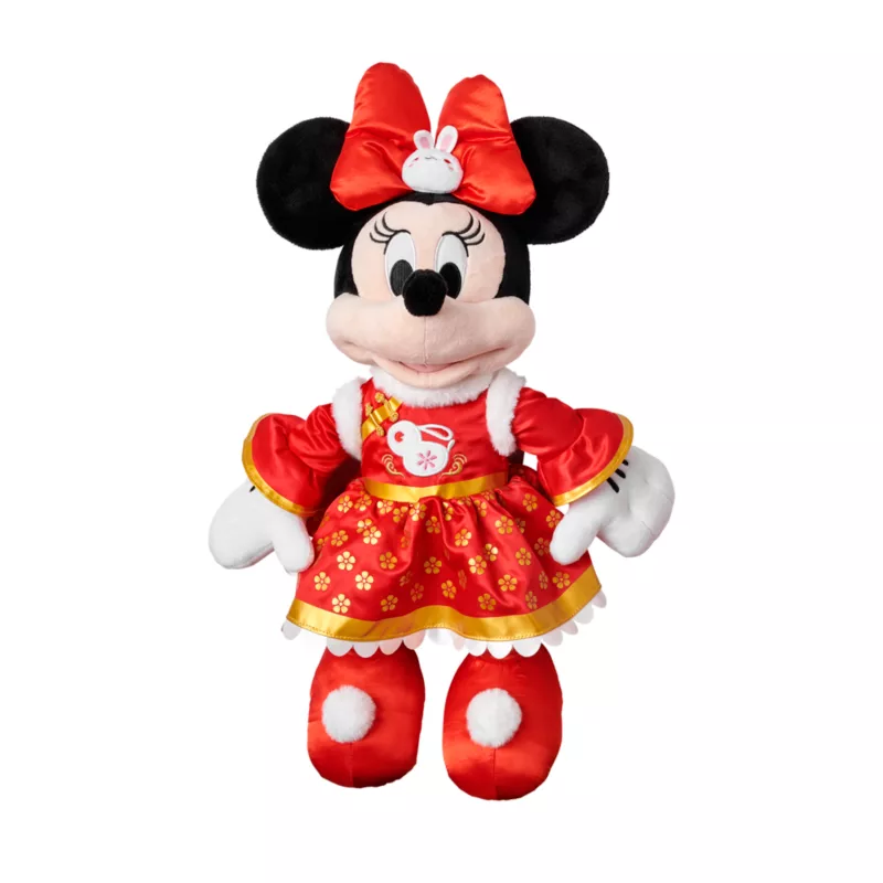 Minnie Mouse joins the Lunar New Year festivities as this plush! Featuring a satin dress, with matching bow and boots, Minnie looks ready to celebrate the Year of the Rabbit.