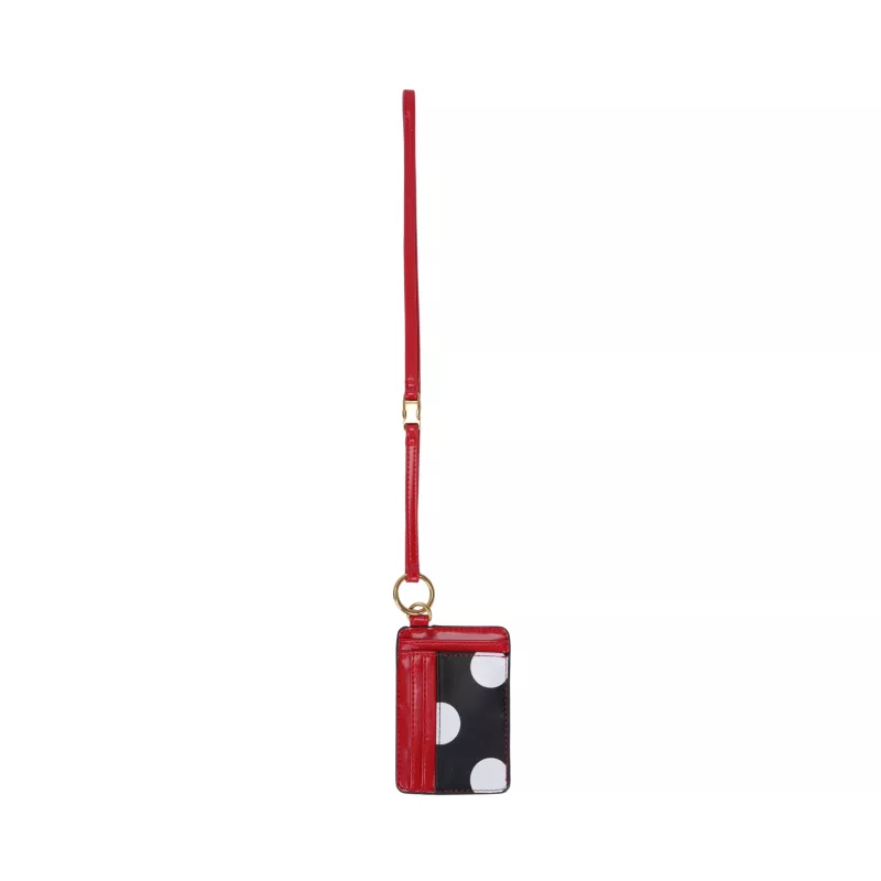 Shop in style with this red and black, Minnie Mouse Retro Polka Dot Card Case, featuring a 5-layer card design, detachable long straps and low-key bronze silhouette finish. You’re sure to turn heads!
