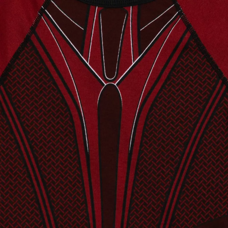 A good night’s sleep will transform any average kid into a mighty Marvel Super Hero when wearing this soft pajama set featuring an allover Scarlet Witch costume print.