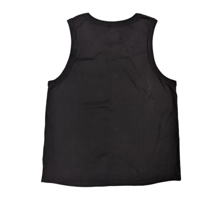 - Screen-printed artistic feature on front is easily seen against the black of the tank top